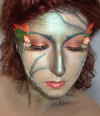 I absolutely love this look, and I loved every minute creating it, but I was a little disappointed with the pics!! I just couldn't get the colours to show up to well. In real life they were beautifully rich metalic teals and purples, but sadly in the pictures they were wishy washy silvers and browns...Oooops haha never mind, I still love it anyway. I think the look suits Kat to a tee and she said it was her favourite one so far (even tho she didn't like having her neck painted hehe). You can't see to well on the pics (bit of a disaster all round this time) but I painted broken butterfly wings all over her neck. They looked beautiful :D
